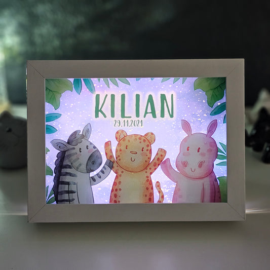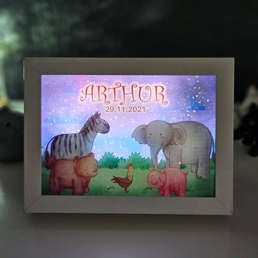 Nachtlicht mit Name & Geburtsdatum - niedliche Tiere in Landschaft -Safari