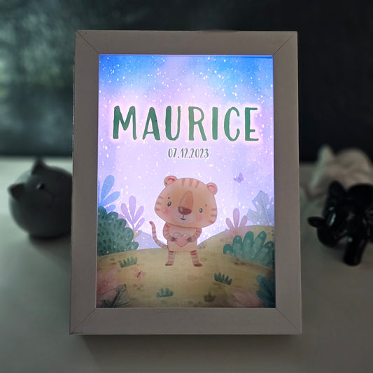 Nachtlicht mit Name & Geburtsdatum - niedliche Tiere in Landschaft - Tiger