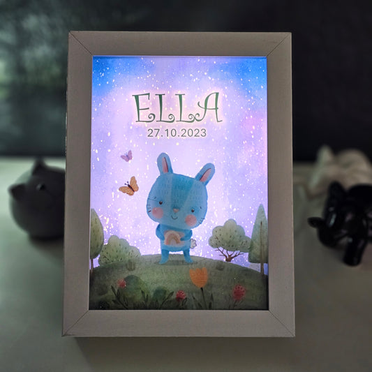 Nachtlicht mit Name & Geburtsdatum - niedliche Tiere in Landschaft - Hase