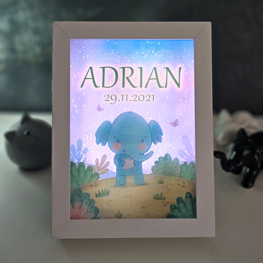 Nachtlicht mit Name & Geburtsdatum - niedliche Tiere in Landschaft - Elefant